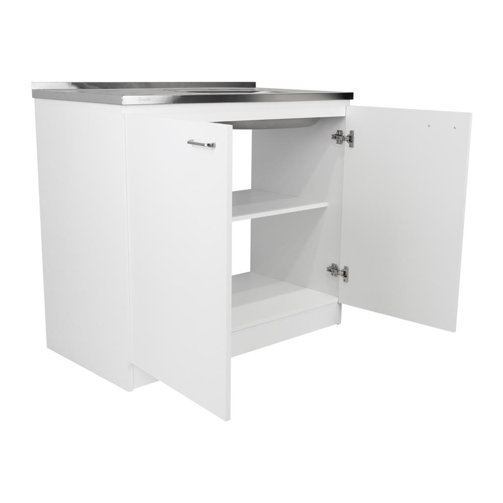 Gabinete Inferior, con amplio espacio para guardar utensilios de cocina, 2 puertas batientes, manijas metálicas. Incluye mesón derecho.