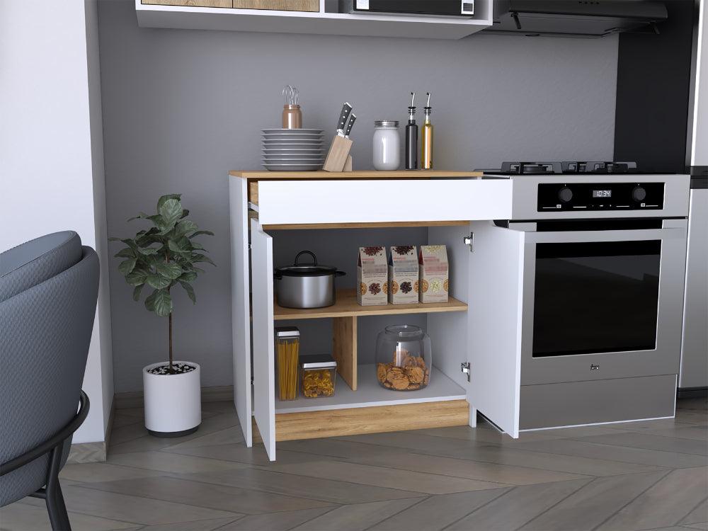 Gabinete Inferior Soler, Blanco y Macadamia, Incluye Meson en Madera