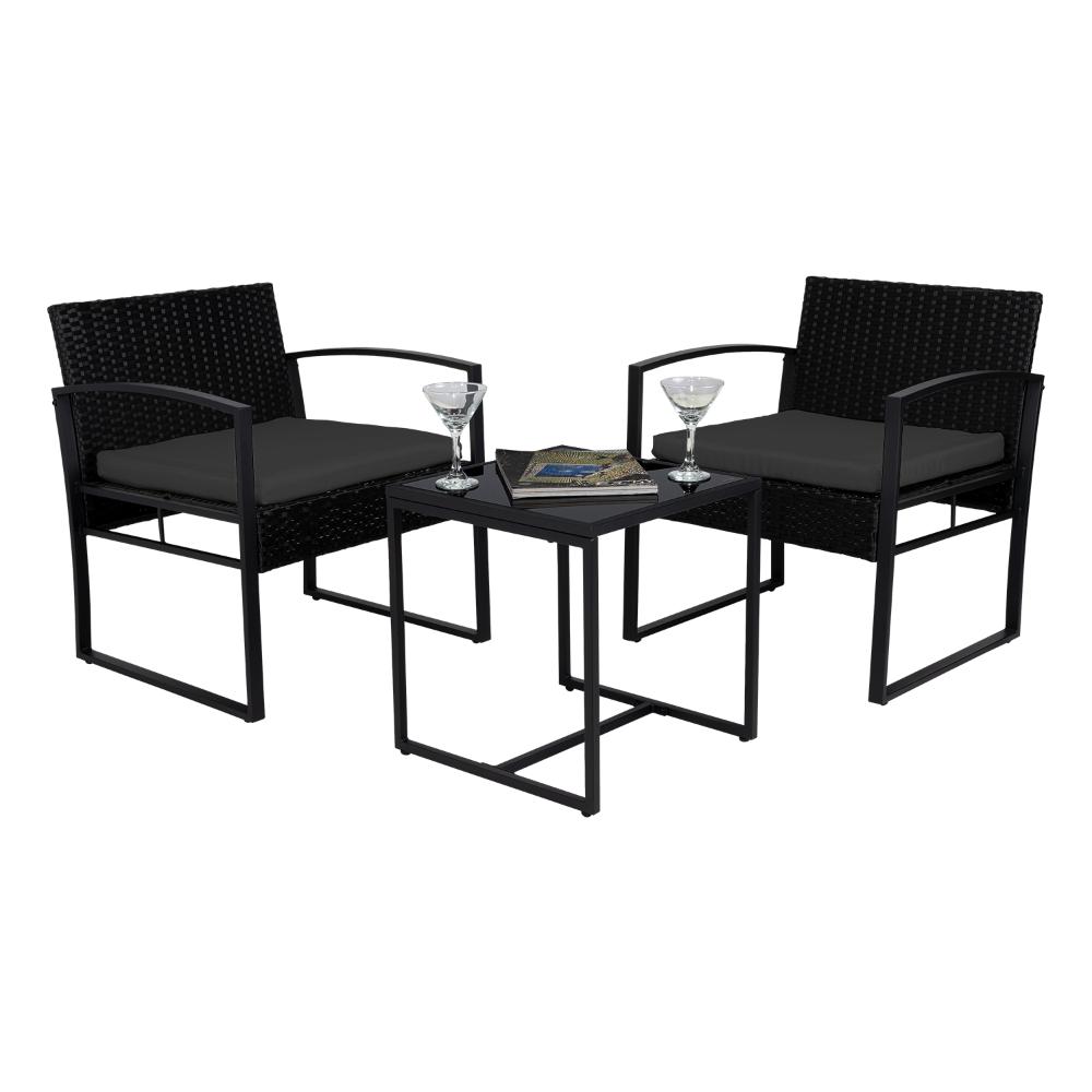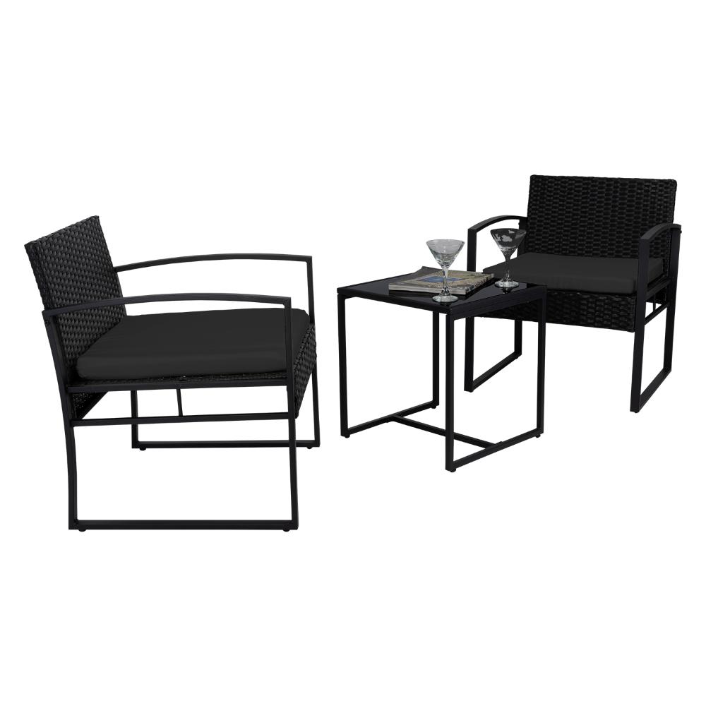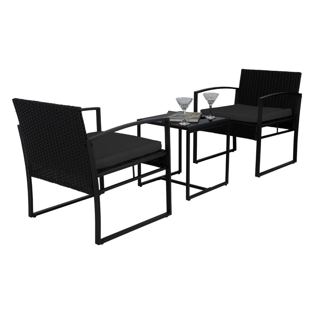 Juego de Sala Exterior Granate, Negro, con Marco de Acero Galvanizado Acabado En Polvo y Dos Sillas