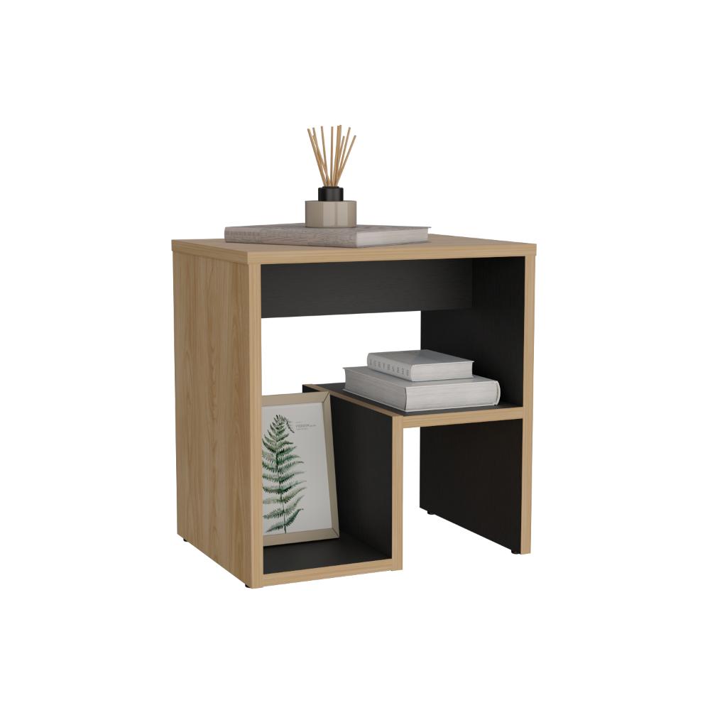 Mesa de Noche Niro, Fresno Europeo y Wengue, con diseño minimalista
