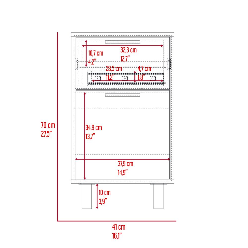 Mesa de Noche, con espacio interior para Almacenar objetos, una puerta abatible y un cajón secreto, diseño moderno