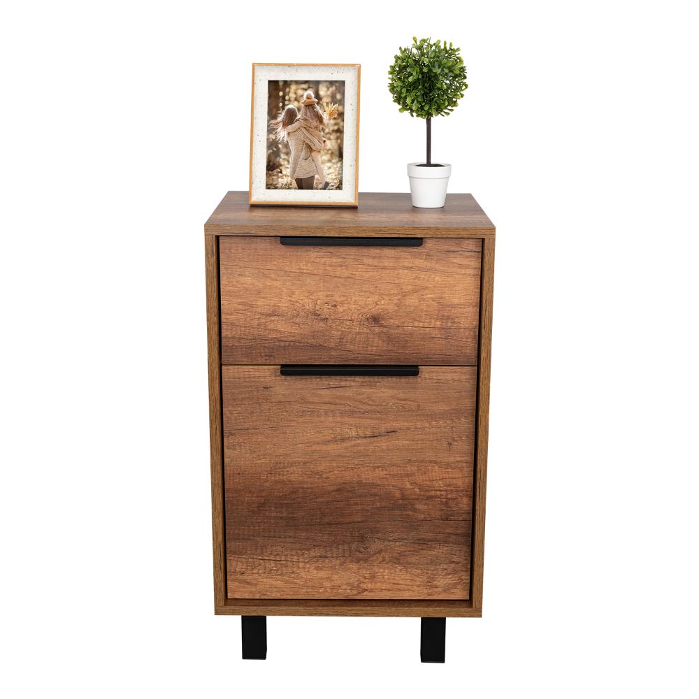 Elaborado en Madera aglomerada MDP, recubierta con láminas melamínicas de excelente calidad, en color Caramelo y Wengue.
