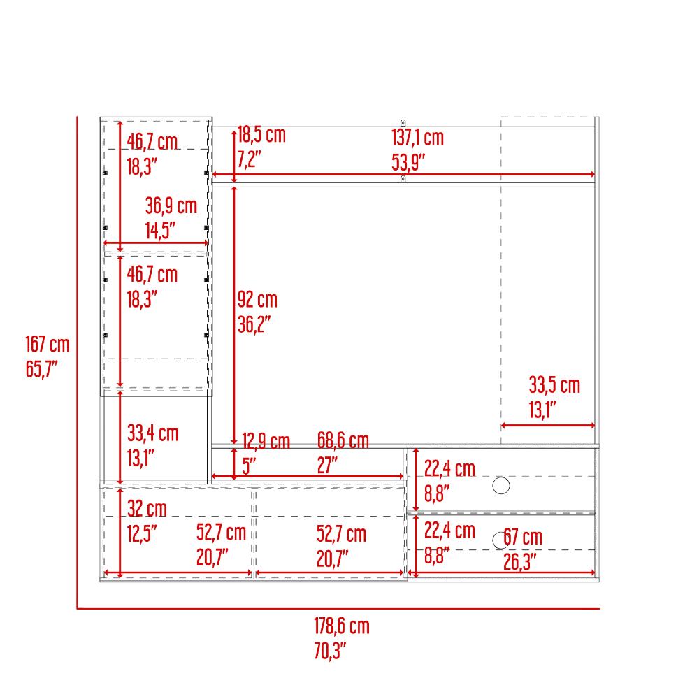 Elaborado en Madera aglomerada MDP, recubierta con láminas melamínicas de excelente calidad, en color Capri y Nogal Europeo.