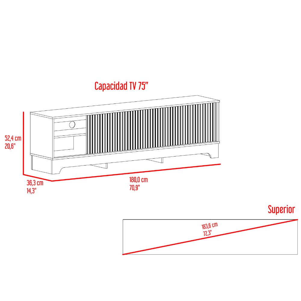 Centro de Entretenimiento con una puerta corrediza, combinación de colores, combinación de colores, y es de facil instalación.