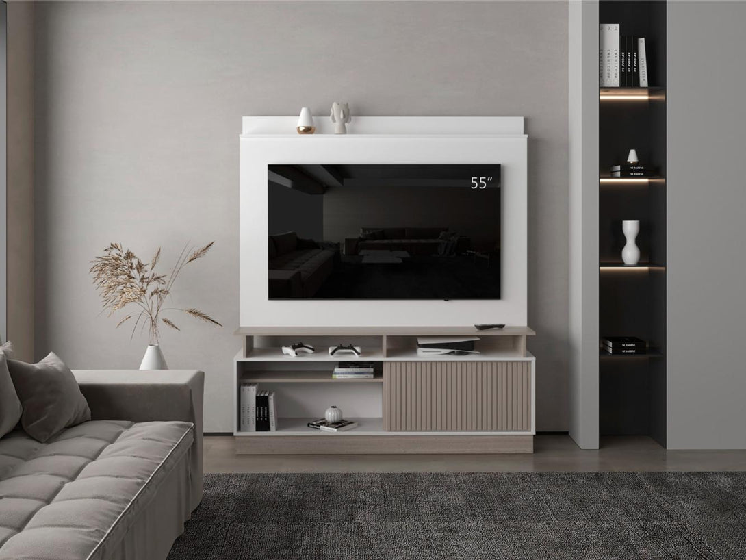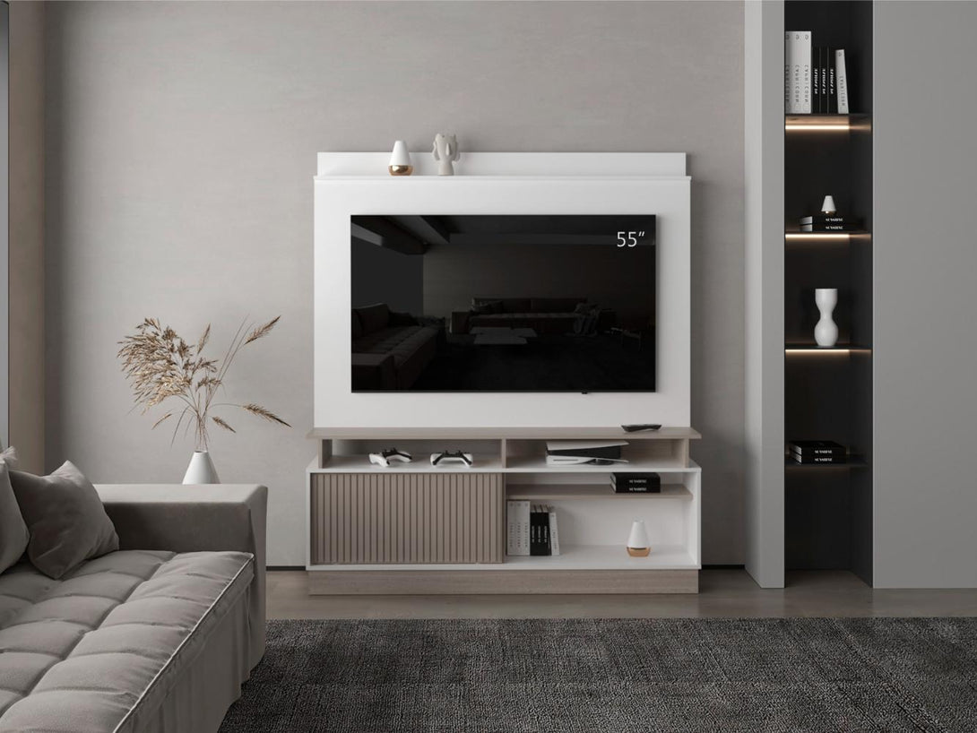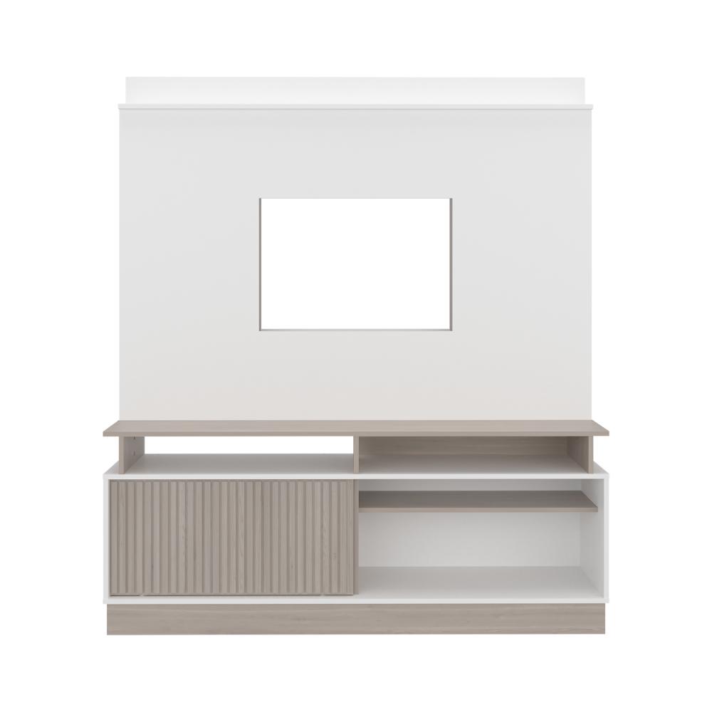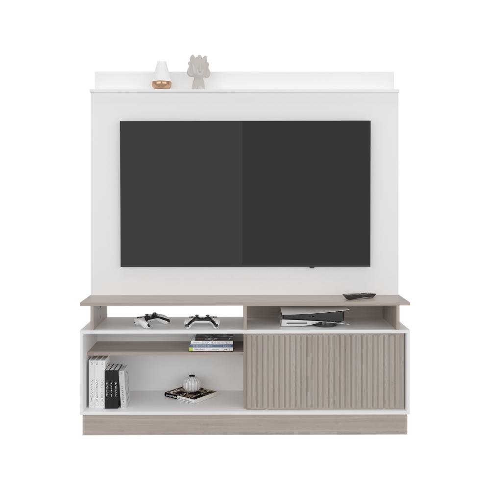 Mesa Para Tv Thun, Blanco Duqueza y Bardolino, con espacio central para tv de hasta 70"