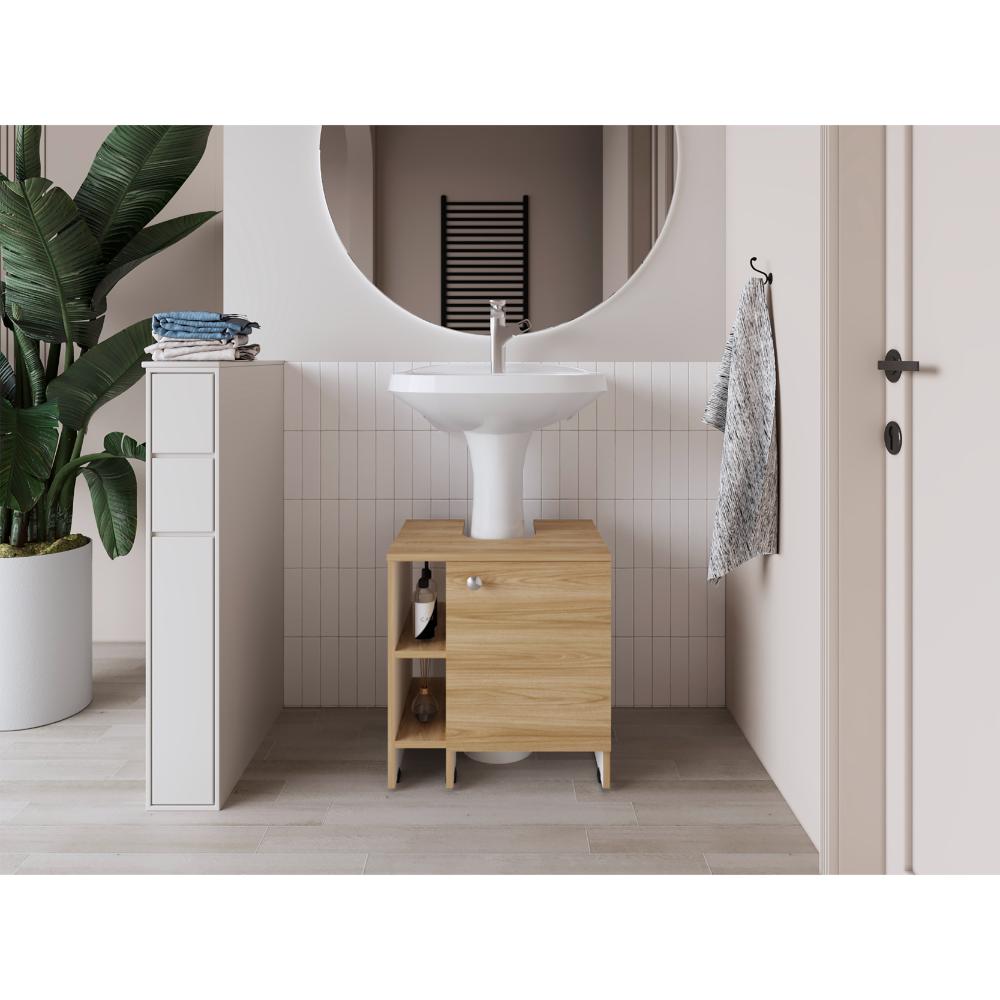 Mueble para Lavamanos Omahi, Fresno Europeo y Blanco Duqueza, con Variedad de Entrepaños