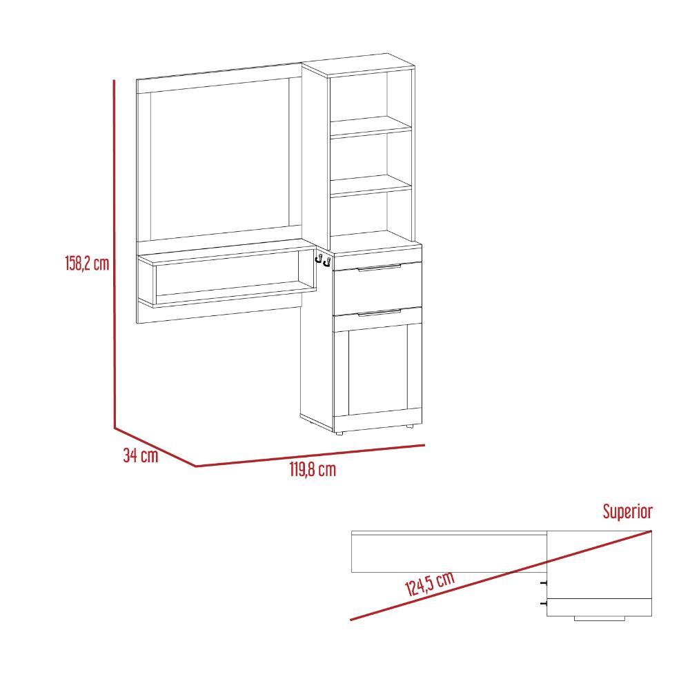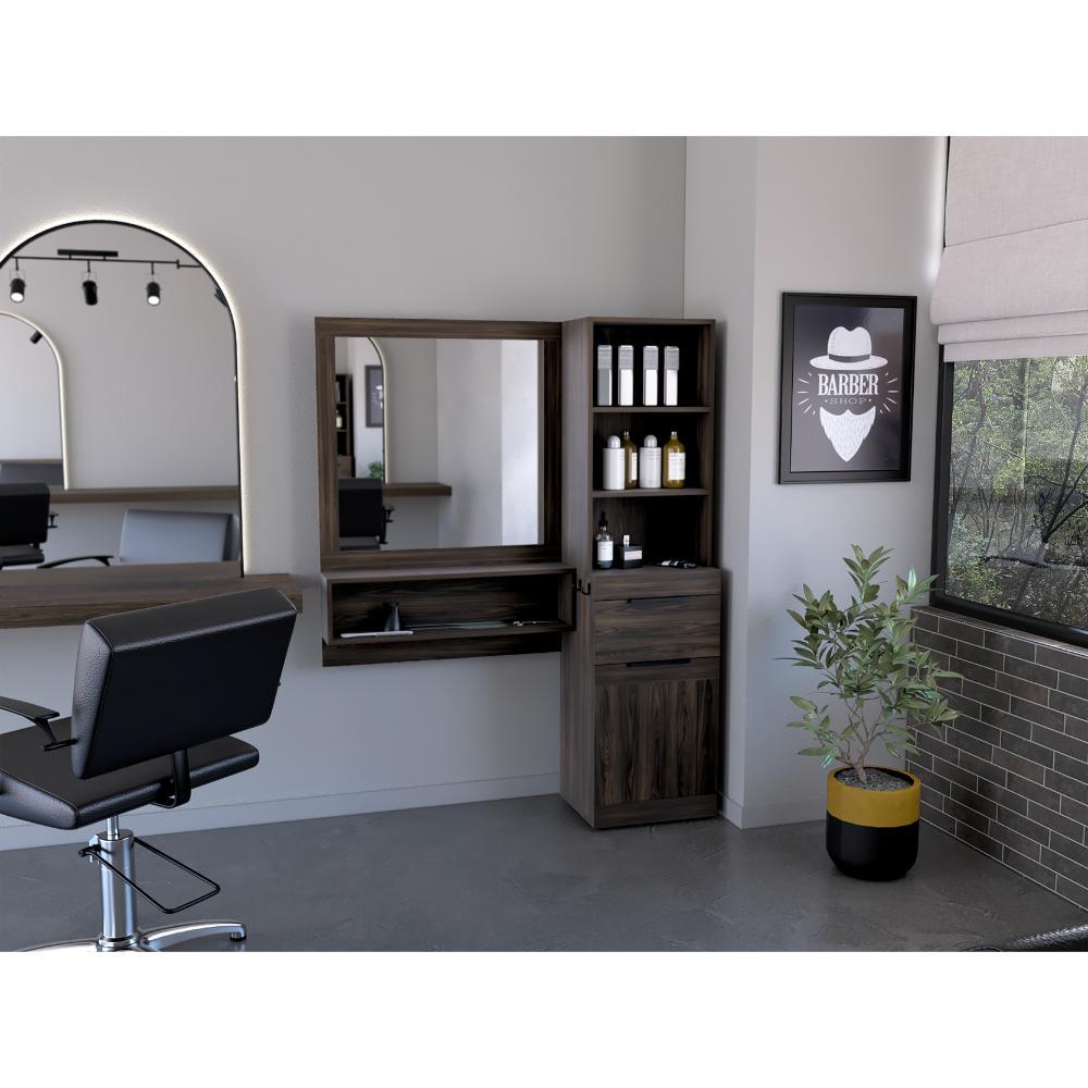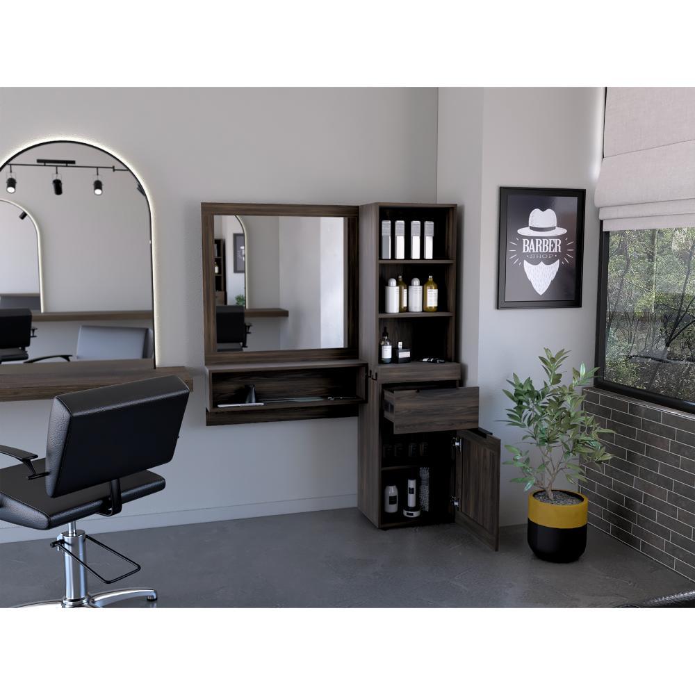 Tocador o Mueble Barberia, con un cajón, diseño moderno, una puerta, espacios para guardar objetos.