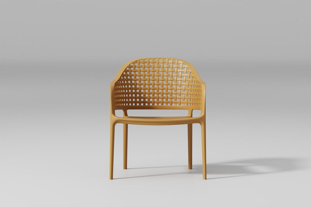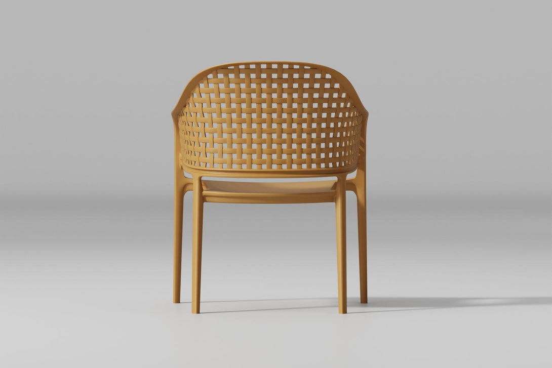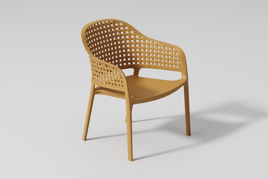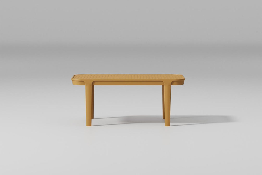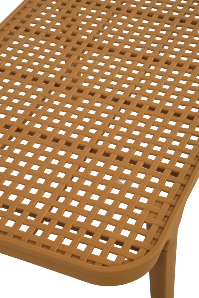 Elaborado en Polipropileno y protección a los rayos UV el set incluye mesa centro, dos sillas y un banco, en Color Naraja