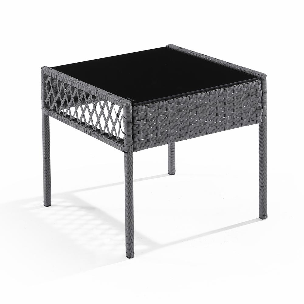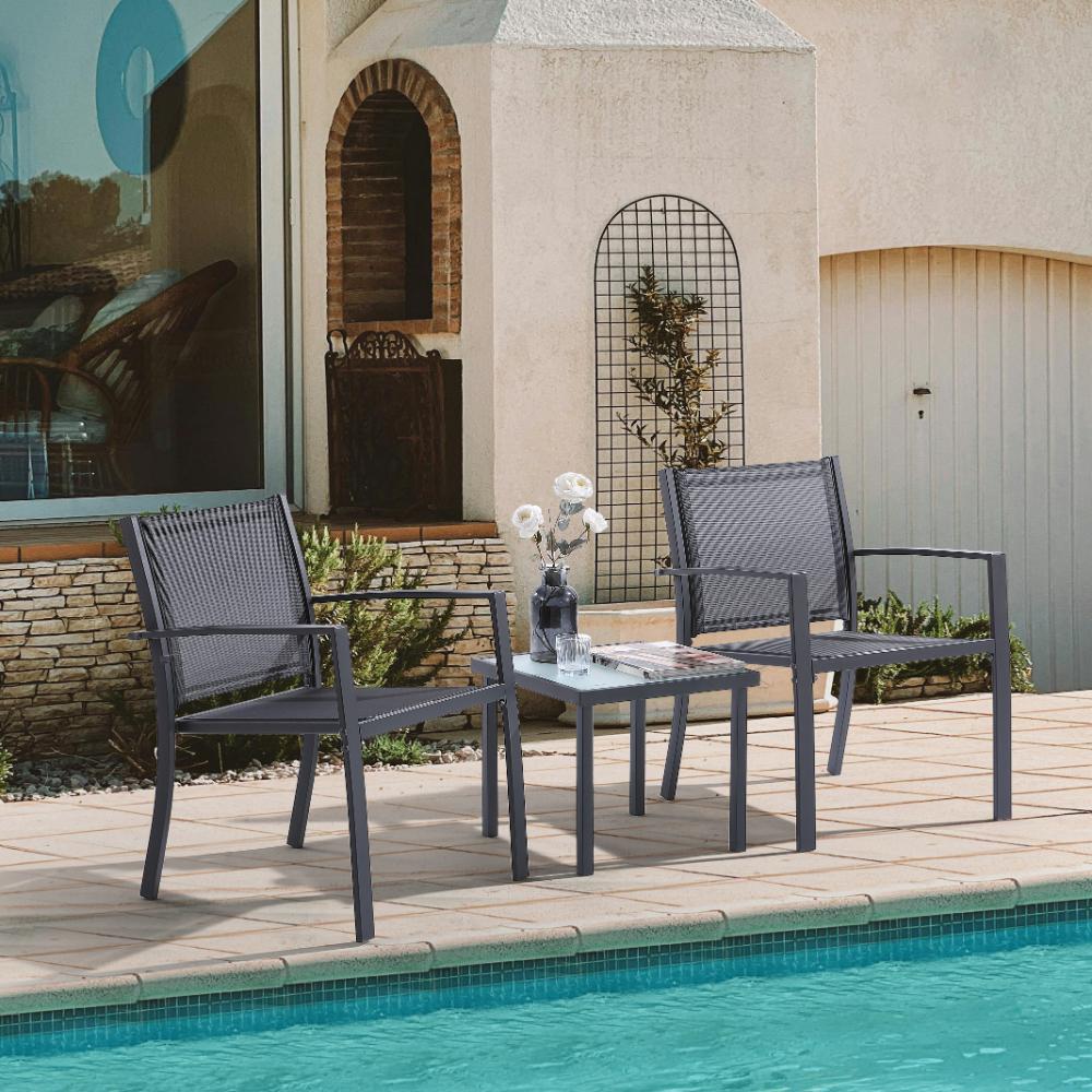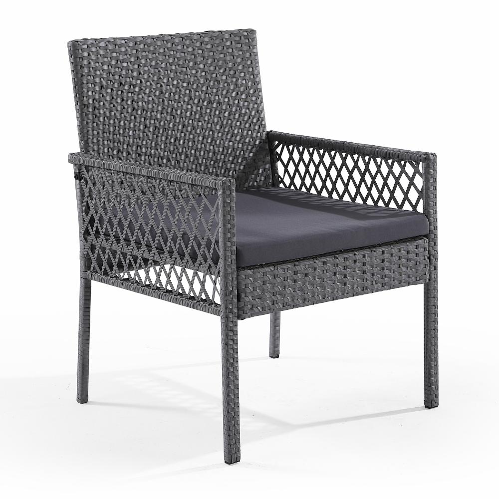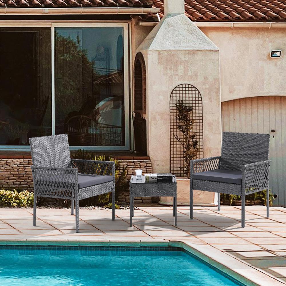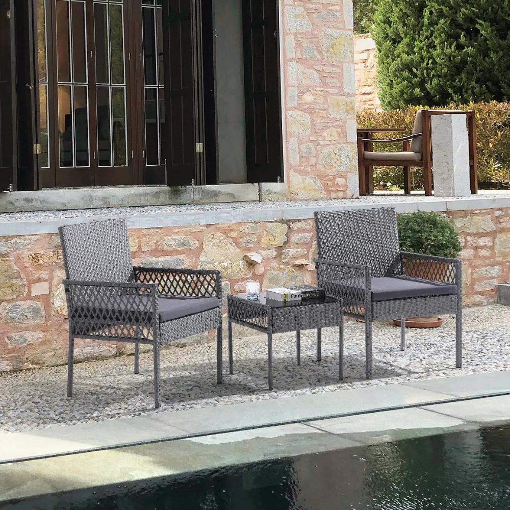Elaborado en Rattan, Plástico el set incluye mesa y dos sillas, en Color Gris.