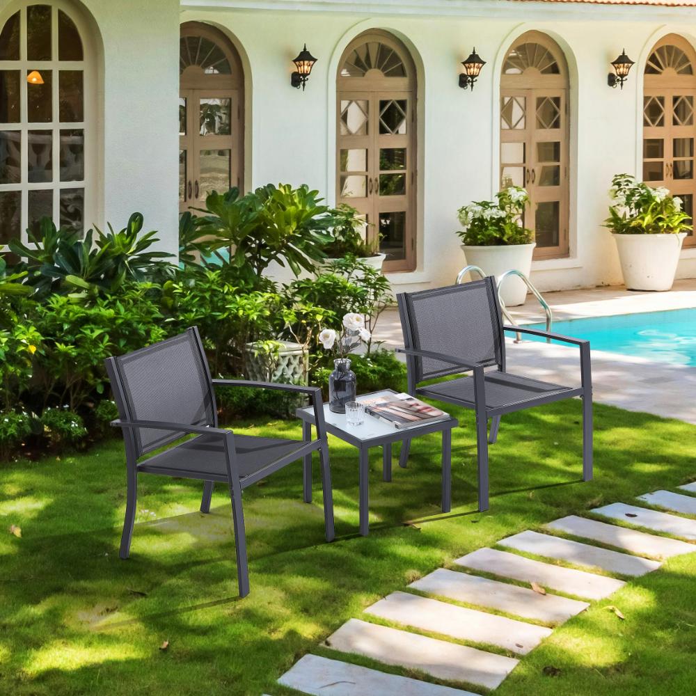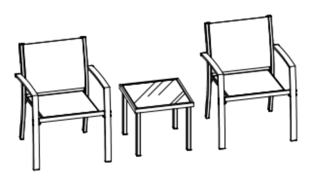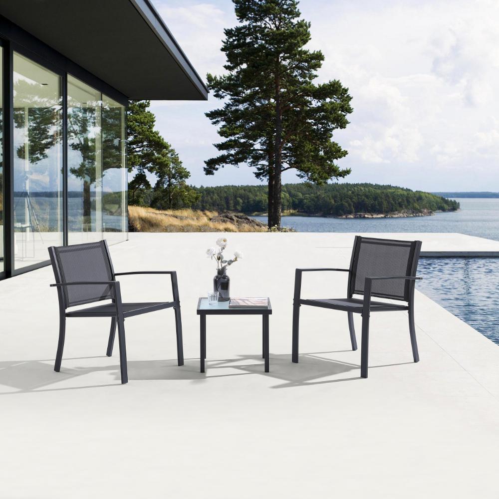 Sala de Exterior Sahara, Gris Oscuro, Dieño moderno incluye 2 sillas 1 Mesa Centro