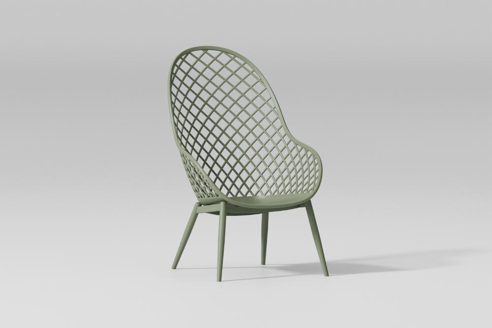 Elaborado en Polipropileno y protección a los rayos UV el set incluye mesa centro, dos sillas y un banco, en Color Verde Olivo