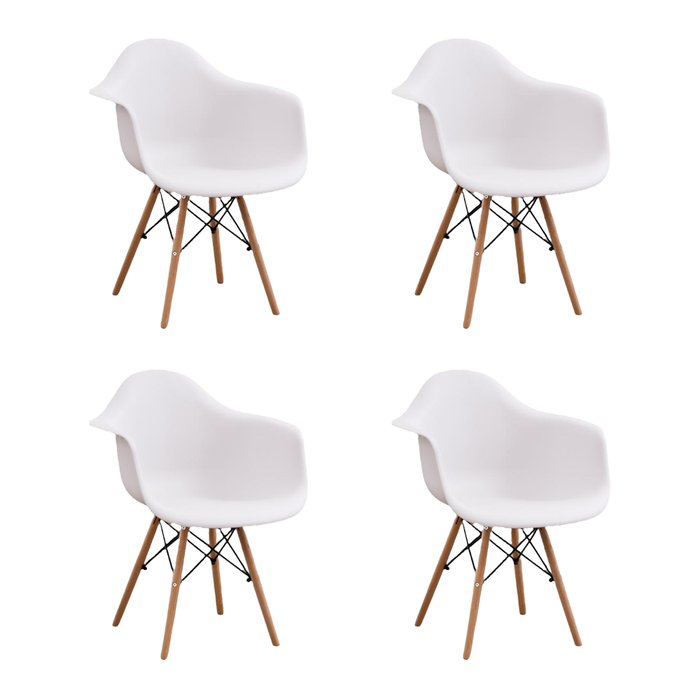 Silla Delia, Color Blanco, Con espaldar y patas en Madera X4
