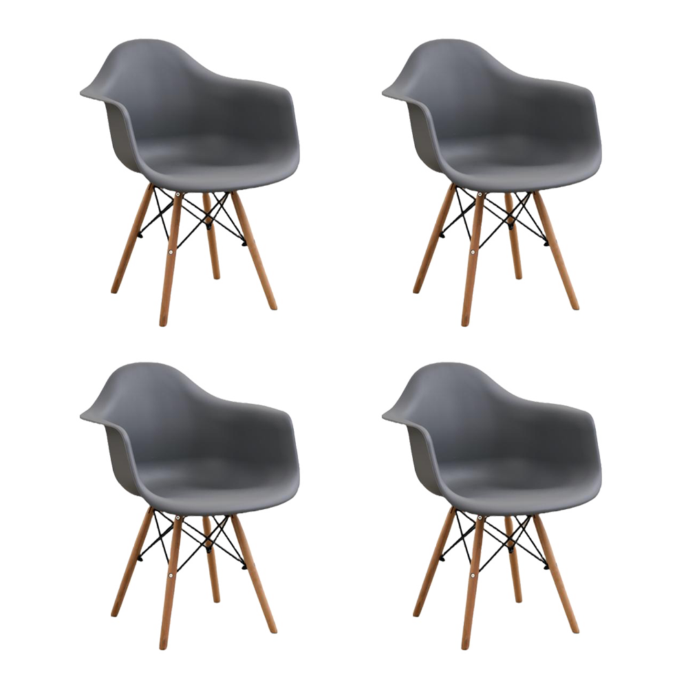 Silla Delia, Color Gris Oscuro, Con espaldar y patas en Madera X4